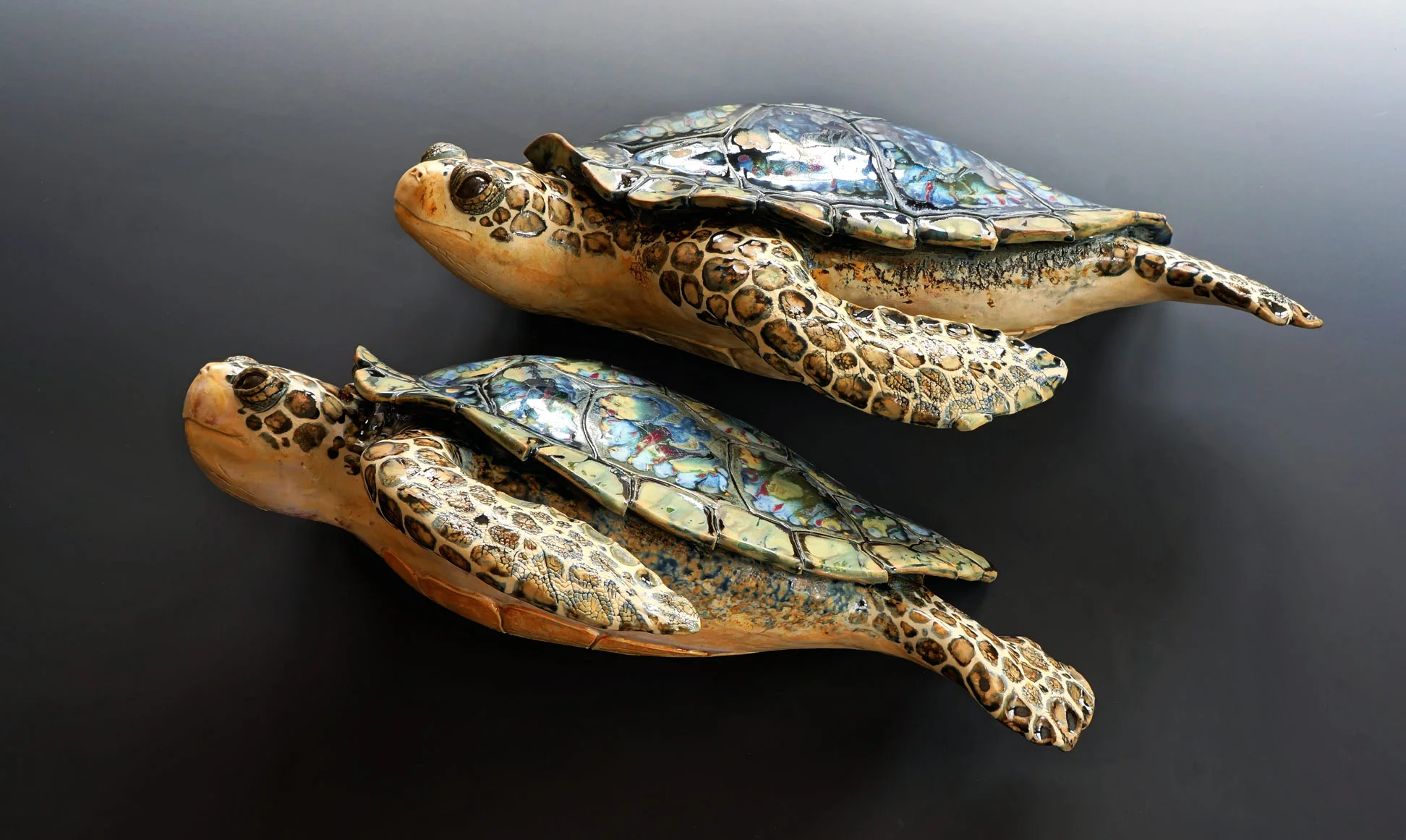 Freestanding turtles; 11, 12, and 16 inches long.